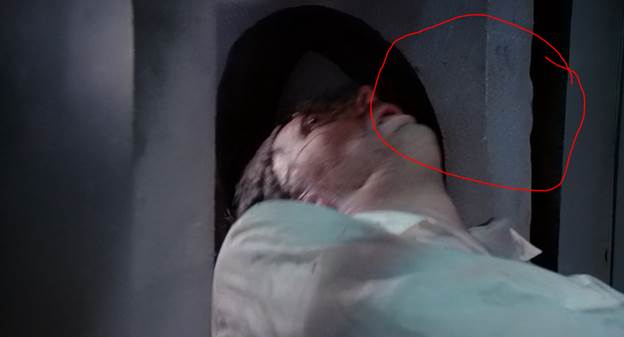 Probably due to the filming sequence, the silver cape appears again late in the film: